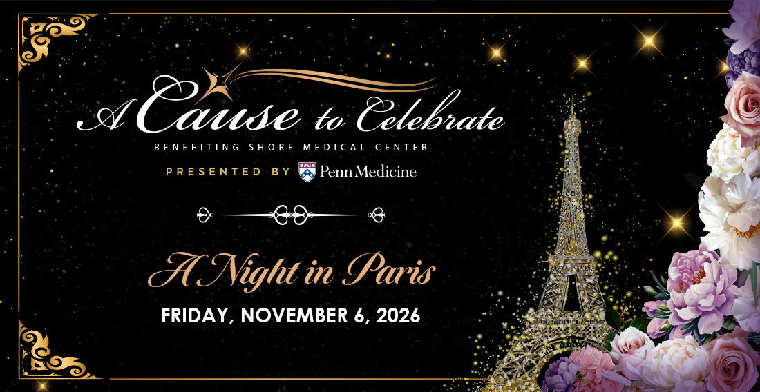 The 2026 A Cause to Celebrate Gala will take place on Friday, November 6, 2026, at the Golden Nugget Hotel Casino in Atlantic City, where guests will enjoy the glitz and glamour of this year’s theme, “An Evening in Paris.” The event will celebrate the many areas of care provided at Shore, which for more than 85 years has remained committed to improving the health and well-being of our community.